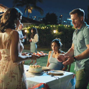 The backyard lights glowed against the California dusk, music floated through the air, and laughter echoed from every corner. It was my husband’s…
