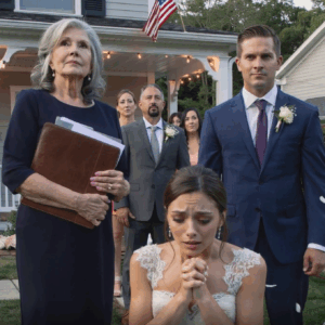 The words struck like ice water as I stood in my simple navy dress, watching my future daughter‑in‑law adjust her designer gown in…