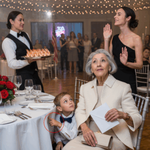 I was sitting quietly with my five‑year‑old grandson at my son’s second wedding when he suddenly gripped my hand and whispered, “Grandma, I…