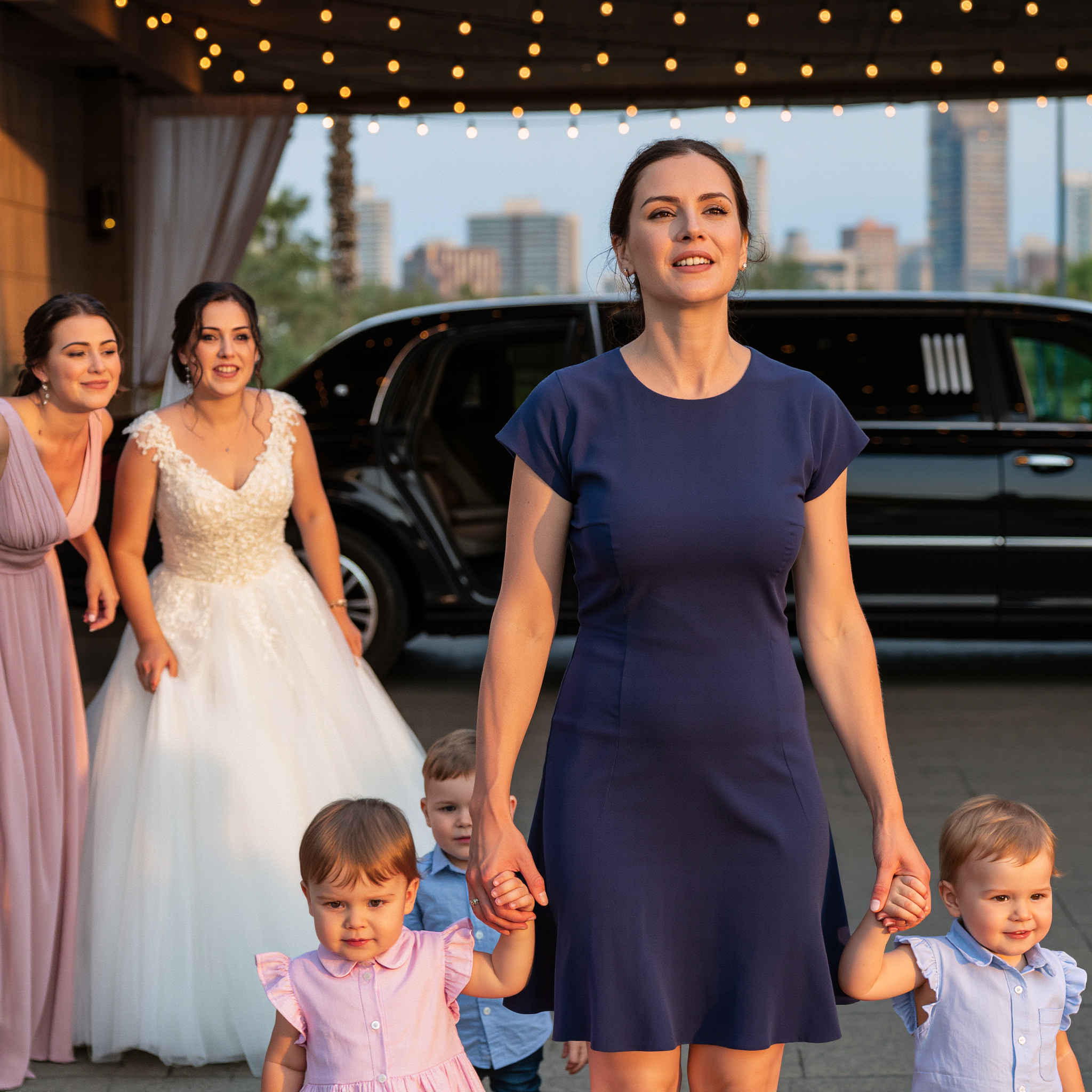 Outside, the limo was already gone. Elise wasted no time: a key turned, four children buckled, doors closed, low hum. No theatrics. No goodbye. A photographer tried to follow; Norah—Elise’s old friend, once Sierra’s bridesmaid—blocked them at the gate.