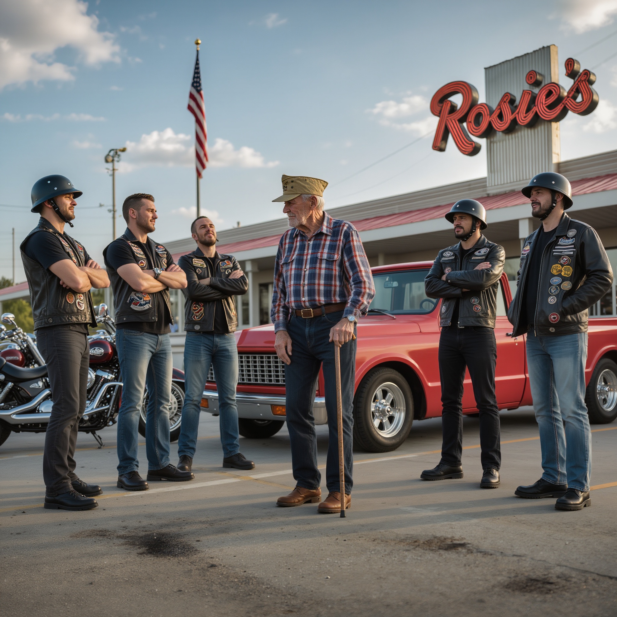 The 91‑year‑old veteran was harassed by bikers at a diner, but when he made one phone call, the warm summer sun beat down on Frank Hawkins’s weathered face as he eased his old pickup truck into the parking lot of Rosie’s Diner. At ninety‑one years old, Frank moved a bit slower these days, but his eyes still held the sharp glint of a man who’d seen more than his fair share of life.