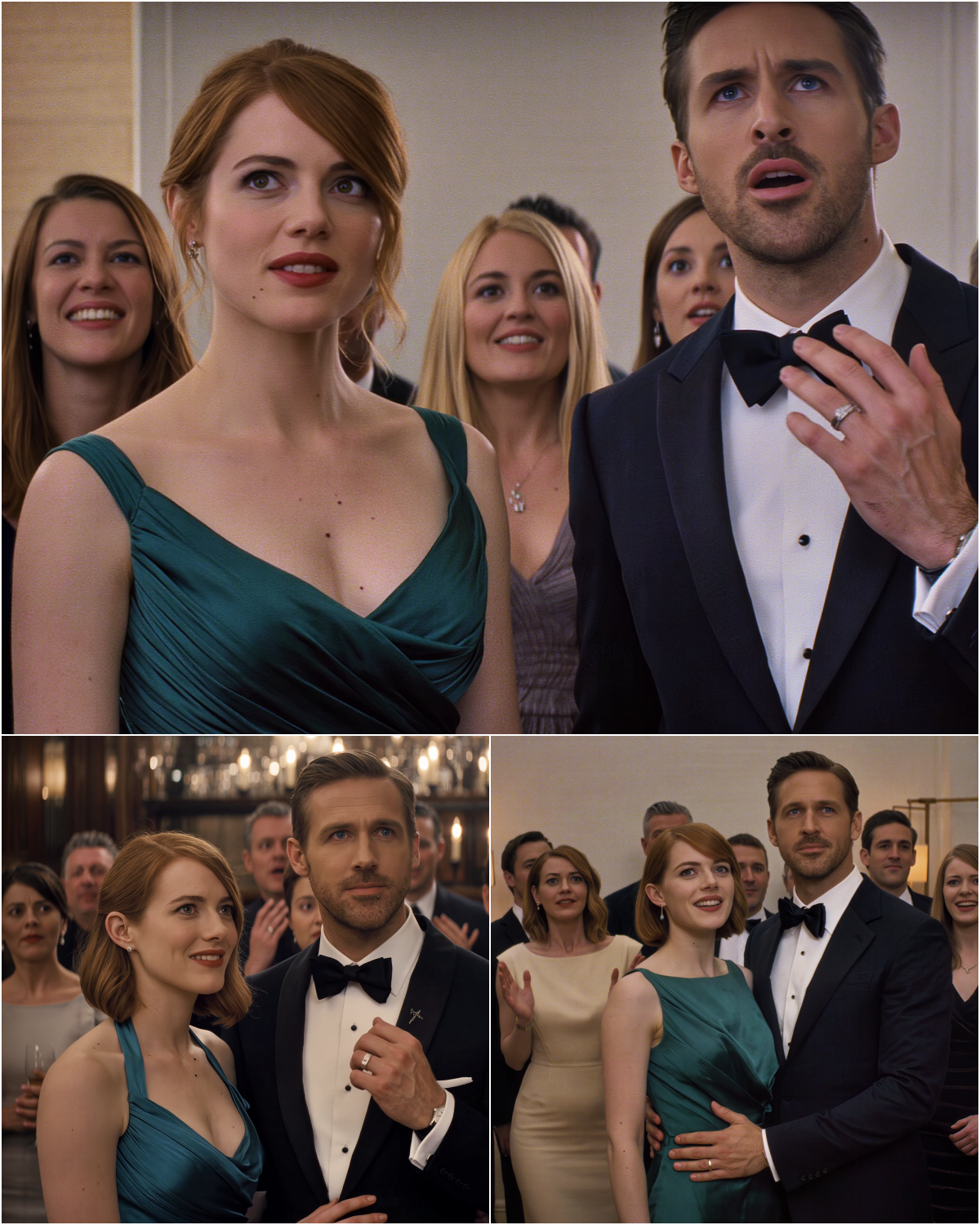 Halfway through the evening, as servers passed champagne and guests drifted toward their seats, Eric tugged her hand.