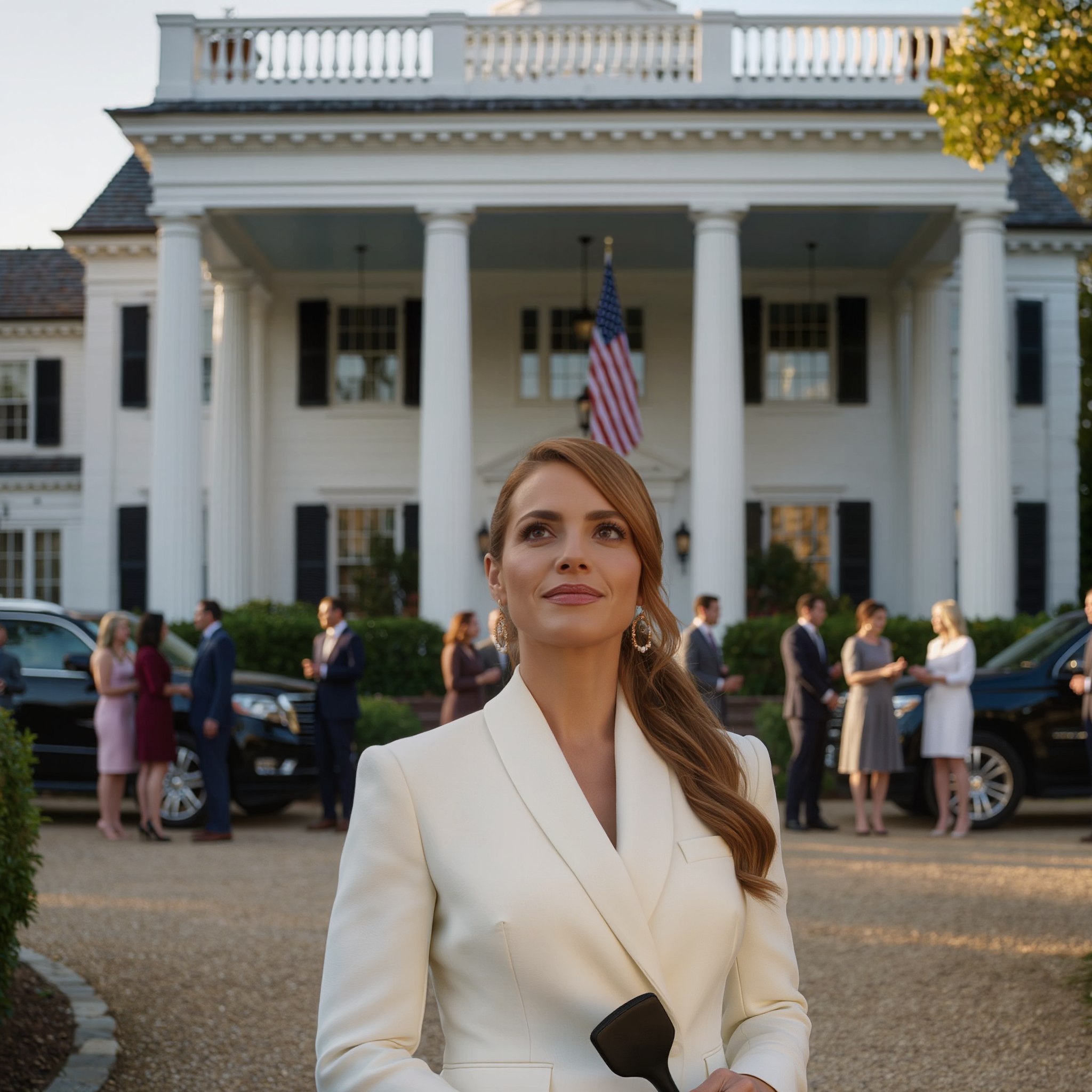 The estate in front of us stretched wider than three football fields. The white façade rose above the grounds with tall columns and long balconies, black shutters framing enormous windows that reflected the sky. Wide porches wrapped around the house in soft curves, as if the building were designed to sit and listen to generations of secrets.