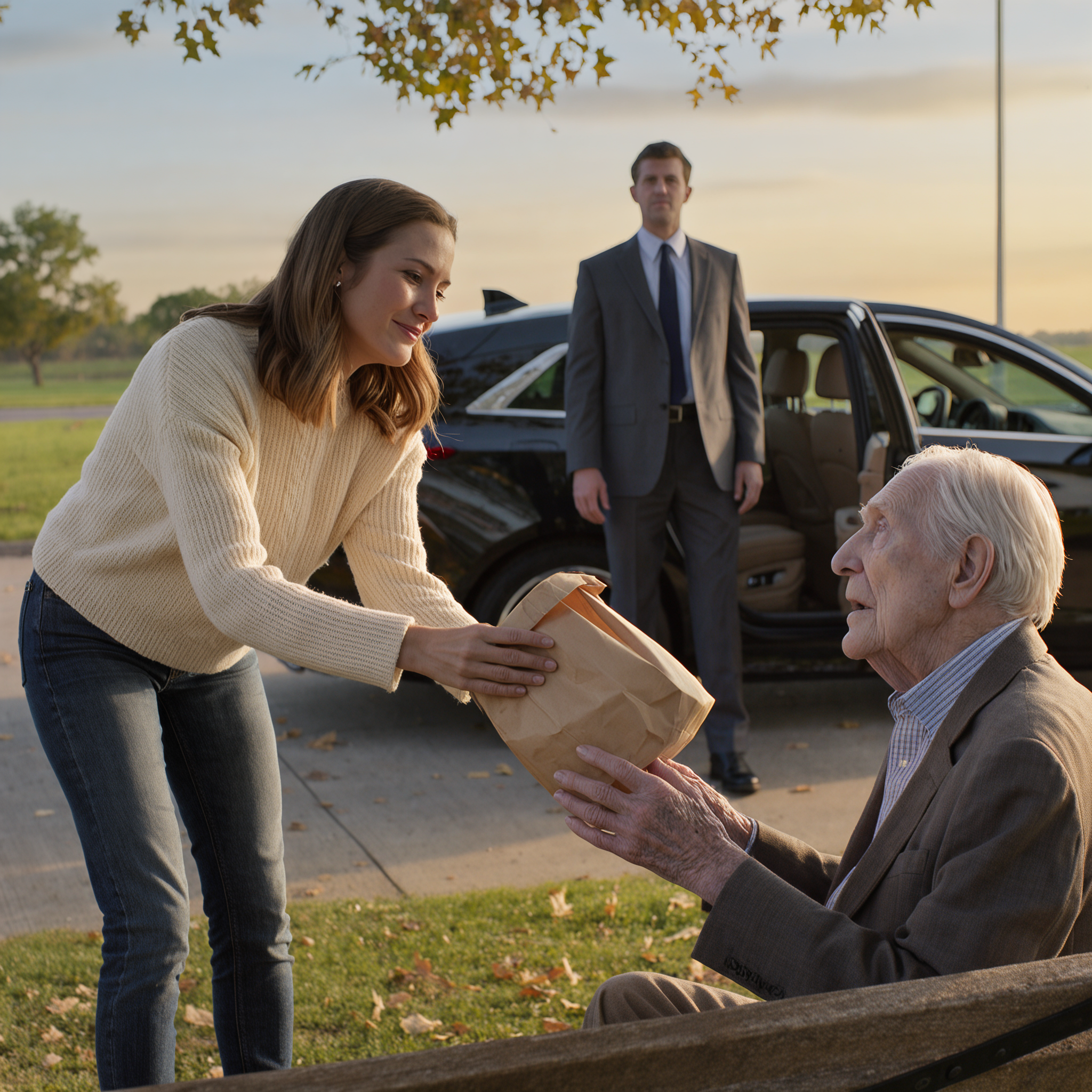 Emily could hardly breathe. The elder’s eyes were cloudy, but his grip was firm, trembling with recognition. “You… you’re the girl,” he whispered, voice breaking like dry leaves. “The one who gave me soup. The one who saved me.”