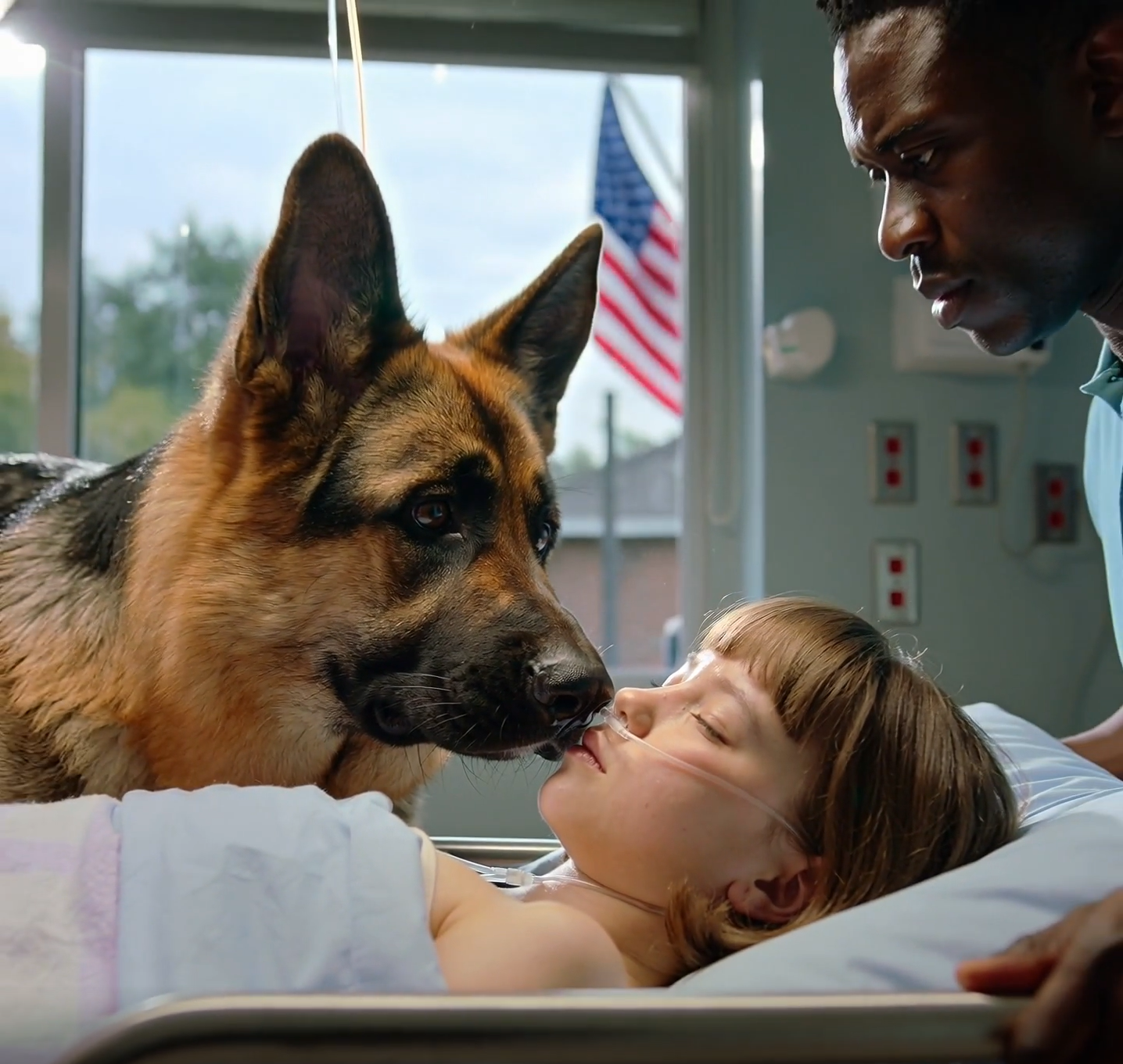When Sophie rested, Buddy exhaled as if he had been holding his breath for days. He eased to the floor, chin on his paws, eyes on the girl. Later, when the monitors were quiet and the hallway traffic became the softer shuffle of night, he slept.