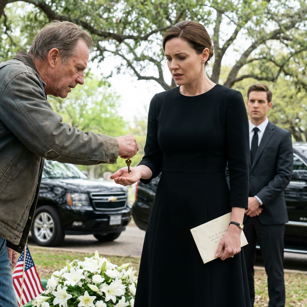 Outside, mourners were pulling away, headlights flickering on as October dusk settled over Austin. The windows were cracked just enough for the smell of leaves and turned earth to drift in. Dad’s handwriting stared up at me, cramped but unmistakable.