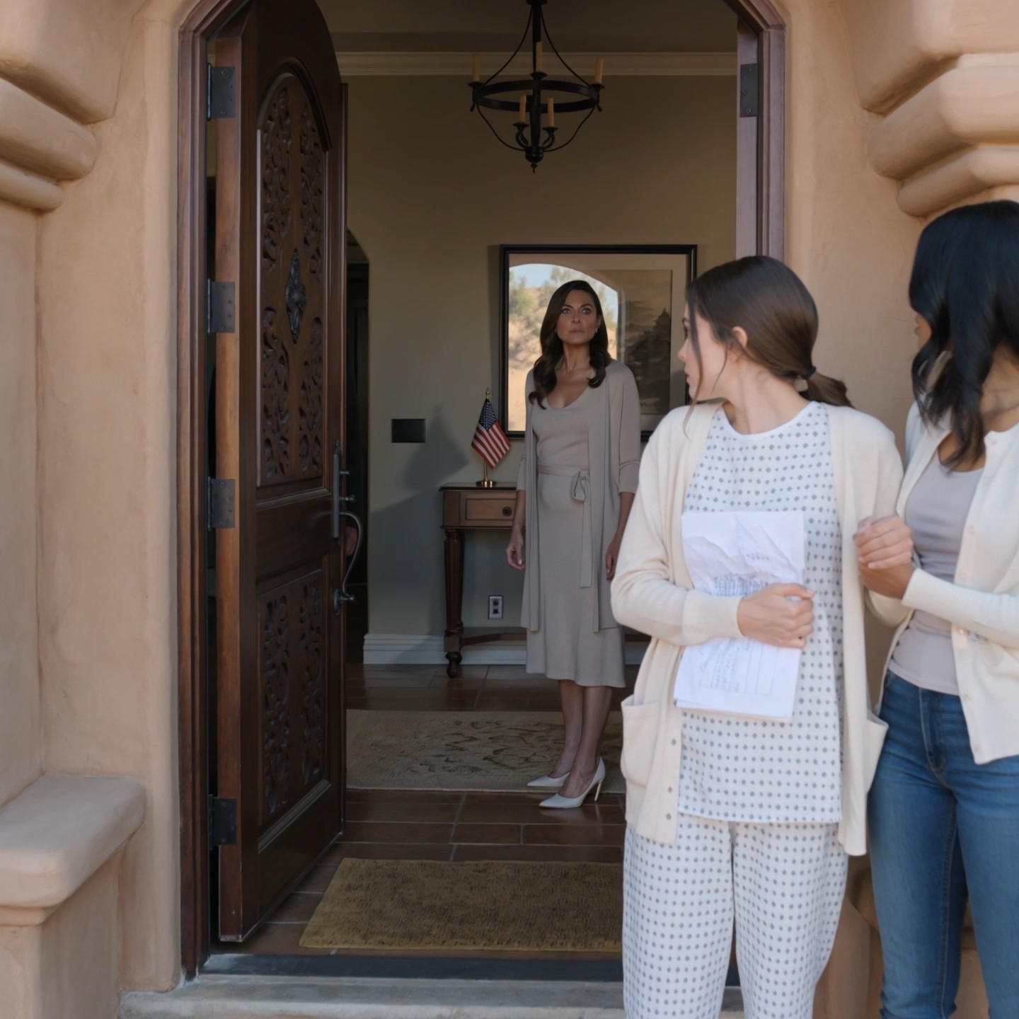 I stood frozen before the heavy wooden door of my Santa Fe home, my trembling hands clutching my painfully operated abdomen. My name is Alana. I am 21 years old, and at that moment, every single breath felt like a jagged blade piercing through my lungs.
