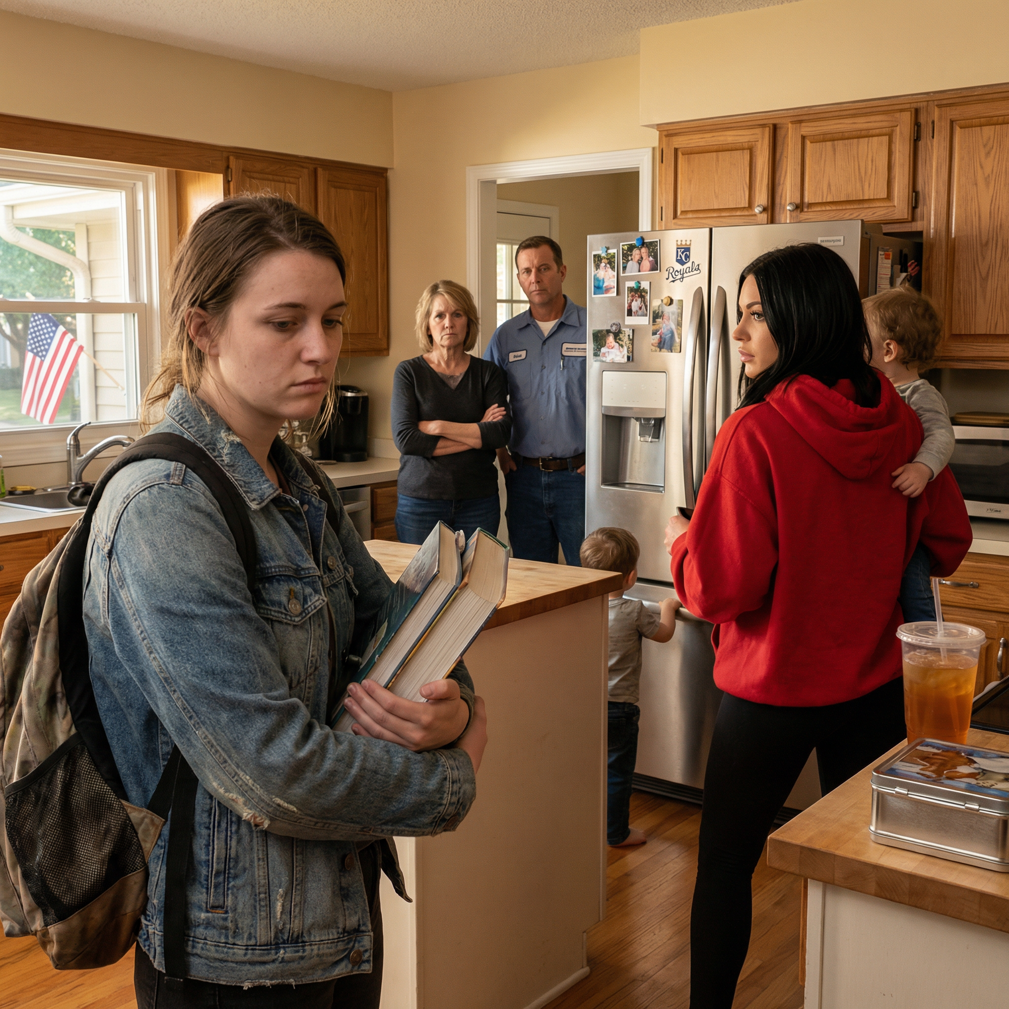 I stood there frozen, my backpack still slung over one shoulder, textbooks weighing me down like bricks. I had just walked in from my shift at the campus bookstore near UMKC, exhausted and starving, smelling faintly of cardboard boxes and printer ink.