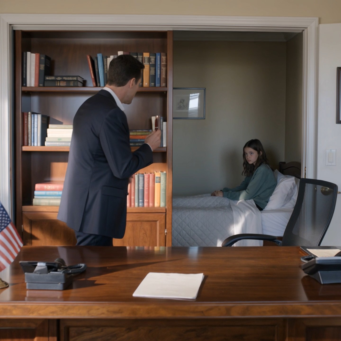 She had always been a slender child, all elbows and bright eyes and impatient energy. The girl sitting on that bed looked like Belle after someone had slowly erased every unnecessary movement from her body. She was thinner. Paler. Her hair had been cut shorter than she liked. She wore clothes I had never seen. For a terrible second she simply stared at me, as though her mind was taking time to determine whether I was real.