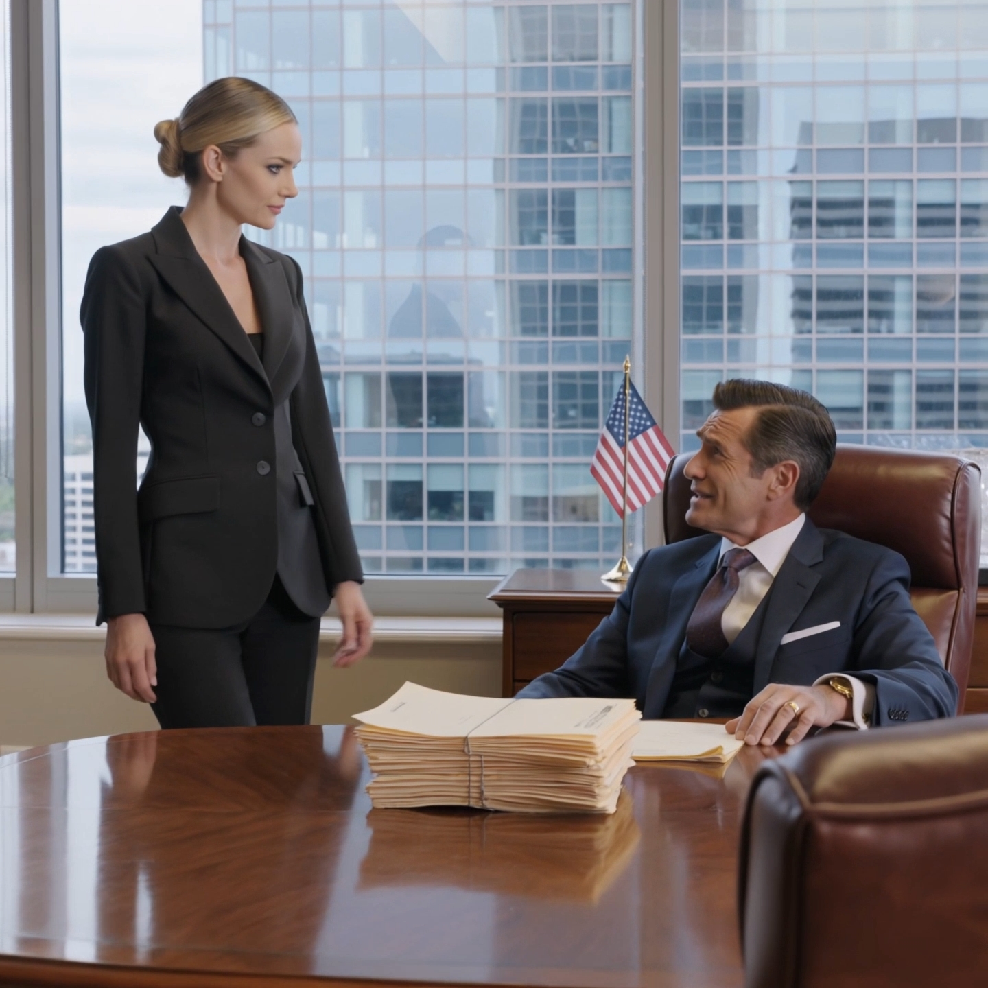 The skyline stretched wide and bright beyond the glass. On the table sat overturned water, open files, and the ruin of a family that had mistaken my silence for submission.
