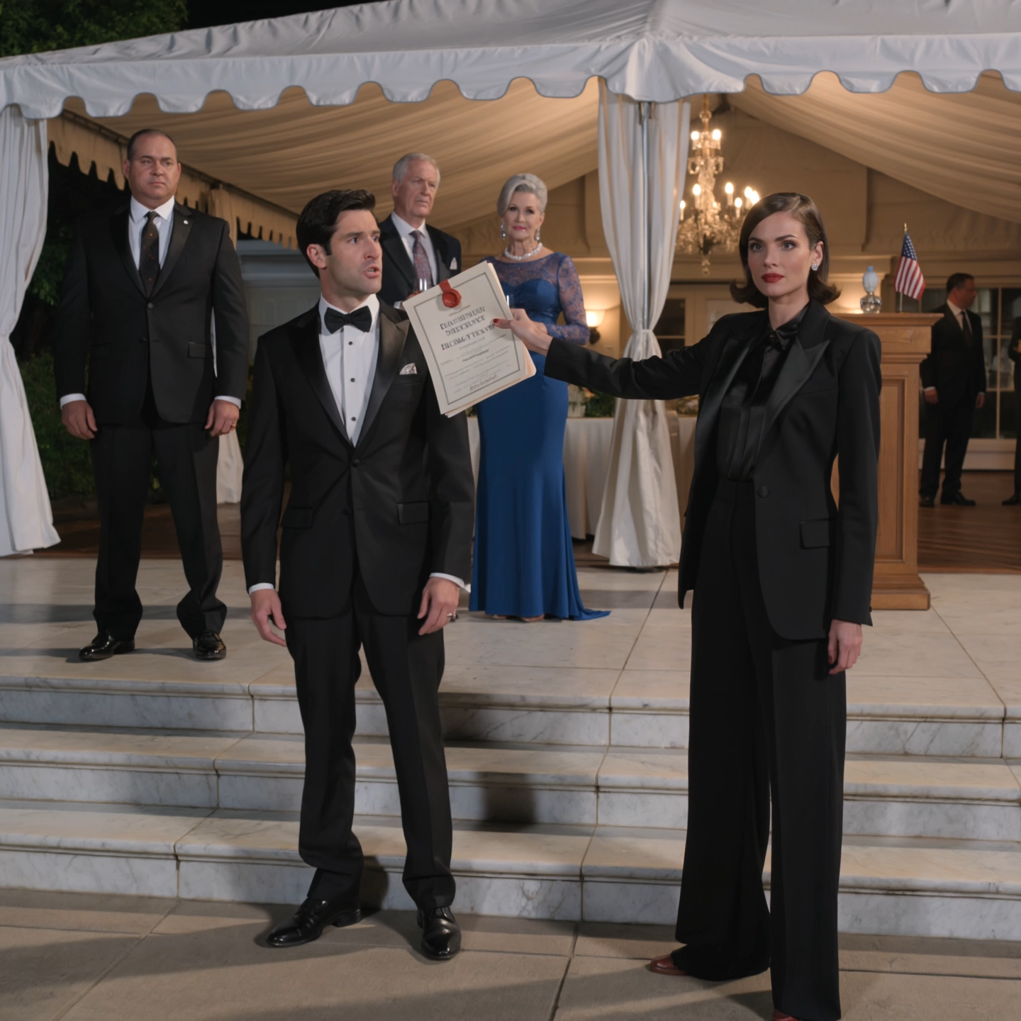 My mother handed me a black catering vest at my sister’s engagement gala in Newport and said, “Serve the caviar, keep your eyes down, and don’t embarrass us in front of people who matter.” So I spent the next ninety minutes carrying a silver tray through a ballroom full of old money while my own family pretended not to know me. Then the groom’s father walked in, saw me in that uniform, and dropped his champagne glass so hard the quartet stopped playing.