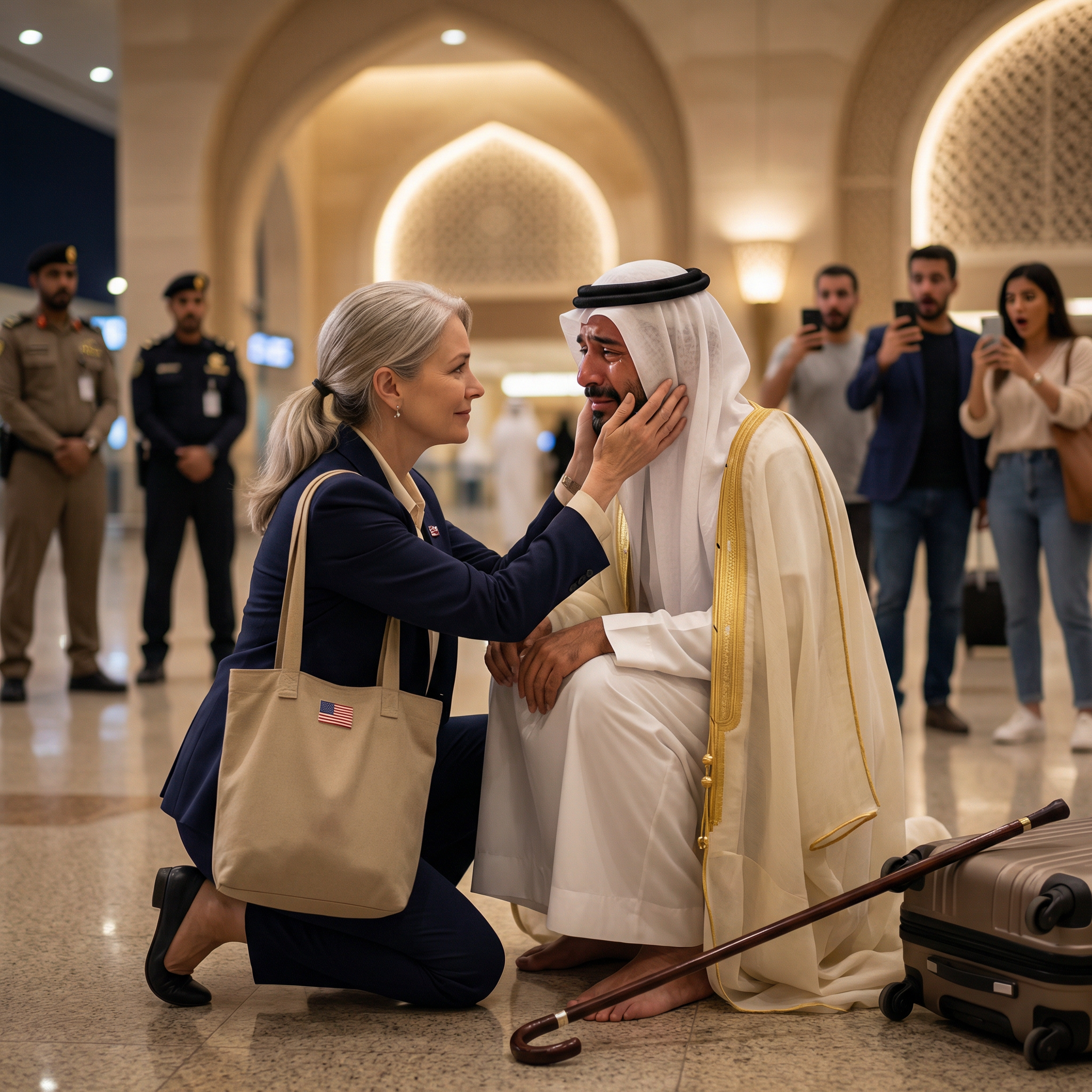 Just yesterday she’d been in New York City, finishing a night shift in a crowded Manhattan ER. Sirens, subway rumbles, the smell of cheap deli coffee—her normal. She’d FaceTimed her mom back in Wichita, Kansas, while wolfing down a bagel, promising this palace contract would finally help her crush her student loans. Now, instead of honking taxis and gray winter slush, she was staring at marble steps glowing under the Riyadh sun.