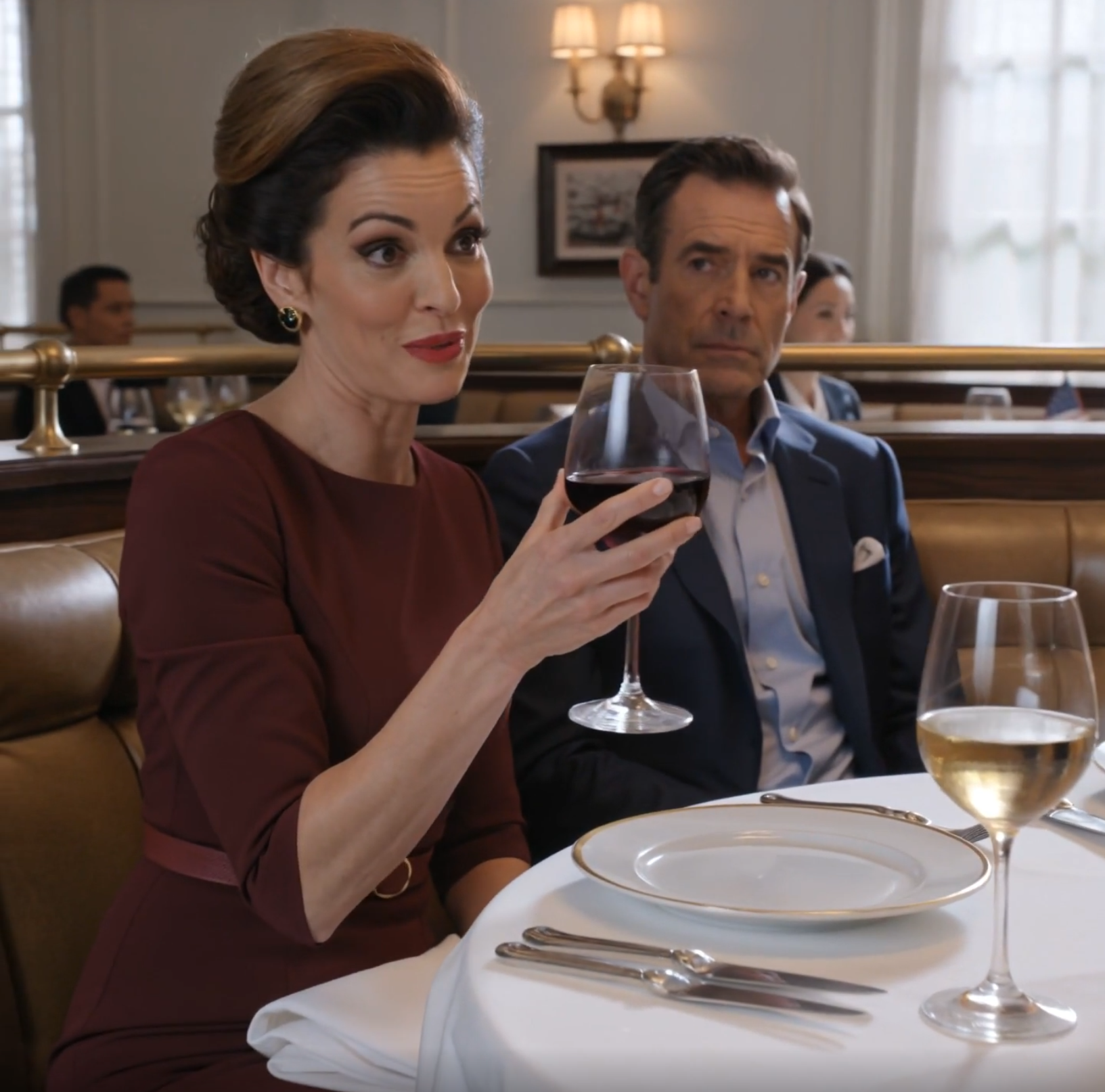 I can still see that night with a kind of merciless clarity. The amber glow of the chandeliers. The gleam of crystal against starched white linen. The soft clink of silverware and low, expensive laughter drifting from other tables. It was one of those white-tablecloth Midtown restaurants where men in dark suits talked in murmurs and the waiters moved like they were part of the architecture.